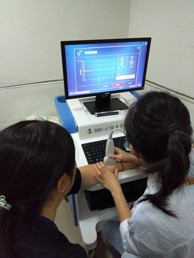 超聲骨密度測量系統是超聲診斷學范疇中的一項專門技術, 主要利用骨質對超聲衰減度和聲速的變化來進行無創、無損、無輻射檢測人體骨密度、骨強度等生理學參數, 對兒童生理發育,成人骨損、骨折風險的預防有很大的參考價值和指導價值, 為骨質疏松疾病提供一種先進的診斷手段。該法操作簡便、安全無害、價格便宜、所用的儀器為兒童骨密度儀,和做B超一樣抹一點耦合劑,之后就有一個手柄式探頭對準骨頭部位進行掃描即可,大約需要3到5分鐘。