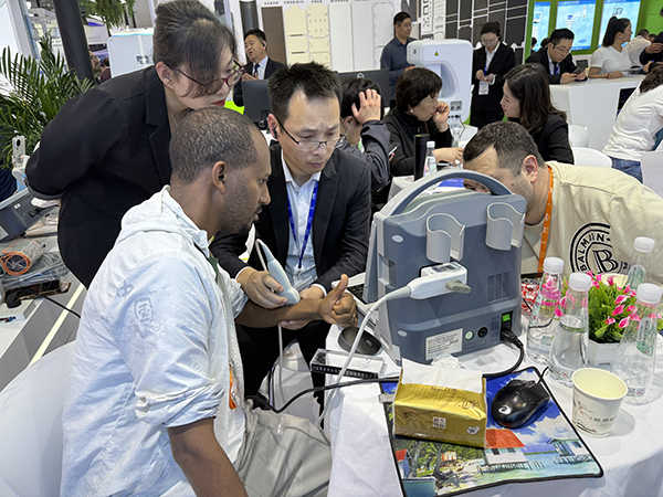 展會現場,品源醫療的工作人員通過實物展示、視頻演示和現場檢測體驗等多種形式,生動展現了產品的技術優勢和應用場景。技術人員耐心解答每一位訪客的疑問,詳細講解產品特點、操作流程及臨床應用價值,獲得了參觀者的一致好評。