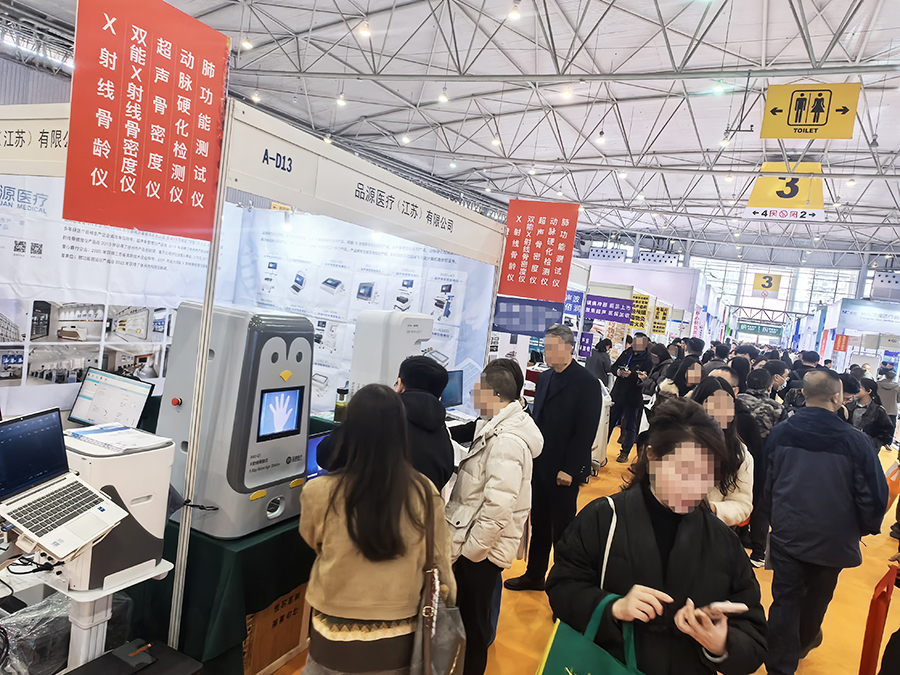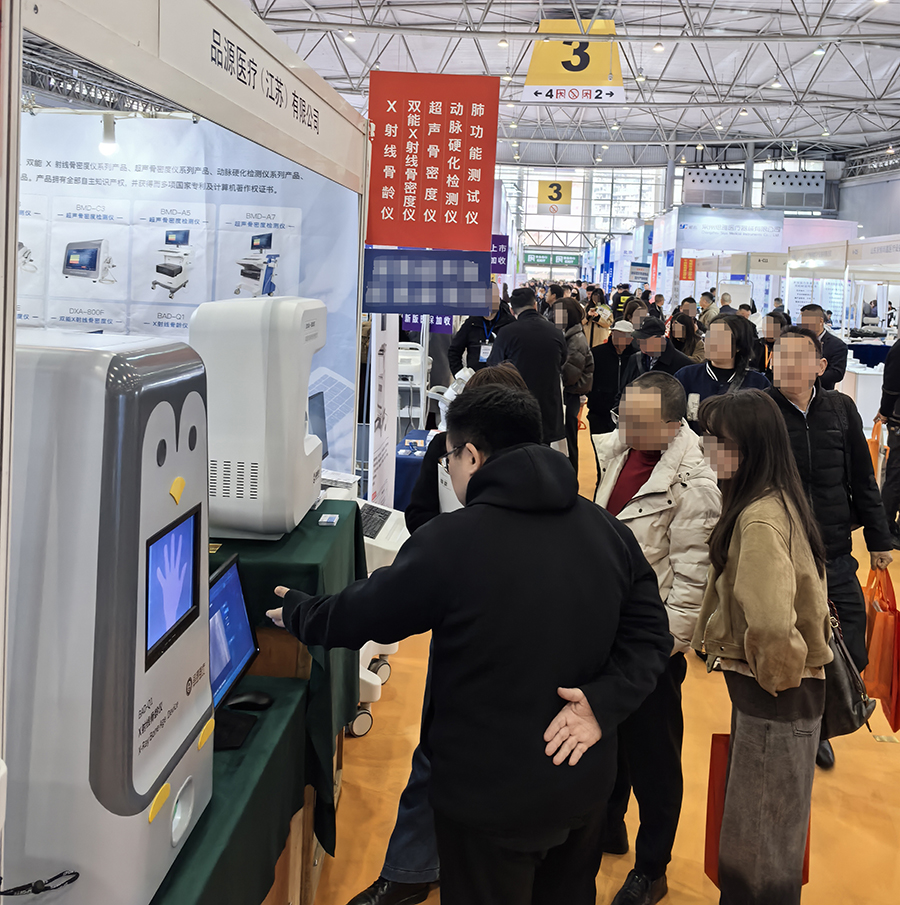 除雙能X射線骨密度儀 DXA-800E 外,品源醫療同步展示的超聲骨密度儀、X 射線骨齡儀、動脈硬化檢測儀及肺功能測試儀,形成覆蓋骨骼、心血管、呼吸功能的全場景檢測解決方案,適配骨科、兒科、體檢科、心內科、呼吸科等多科室應用需求,可滿足各級醫療機構、健康管理中心的多樣化采購與應用需求。