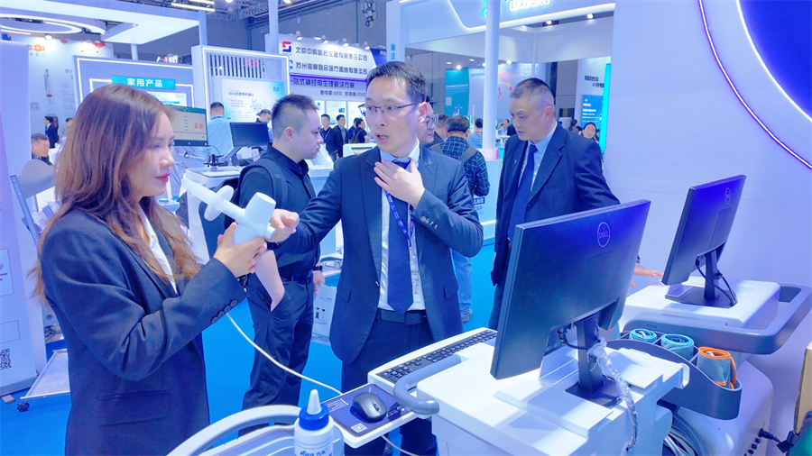 展會首日,來自全國各地的醫院院長、科室主任、采購負責人、行業經銷商及專業觀眾紛紛駐足參觀、深入咨詢。展位內,工作人員熱情接待每一位訪客,通過實物講解、現場演示、互動體驗等多種形式,細致介紹產品性能、臨床適配場景及合作政策,現場洽談氛圍熱烈。