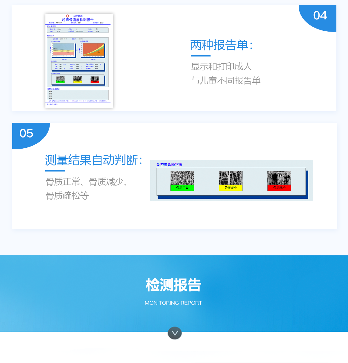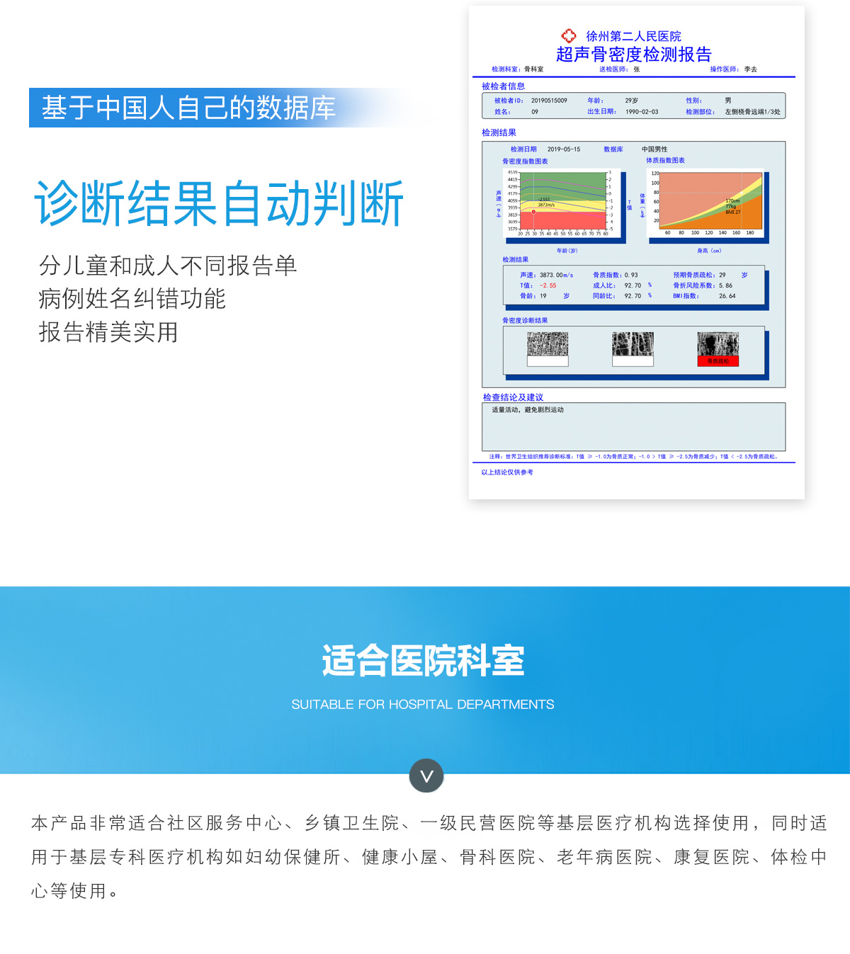 ■ 軟件優勢::BMD-A系列超聲骨密度檢測儀一臺儀器裝配有智能分析系統,經濟實用。可測量0-100歲人群。